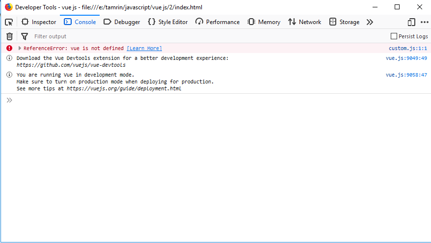 من با ی مشکلی مواجه شدم و هر وقت میخوام یک new vue در فایل custom.js تعریف کنم با این ارور در console مواجه میشم ( ReferenceError: vue is not defined ) و کلا اپ غیر فعال میمونه و کار نمیکنه میخوام بدونم علتش چیه که vue ناشناخنه میمونه برای مرورگر با اینکه من اونو تعریف می کنم در فایل custom.js .