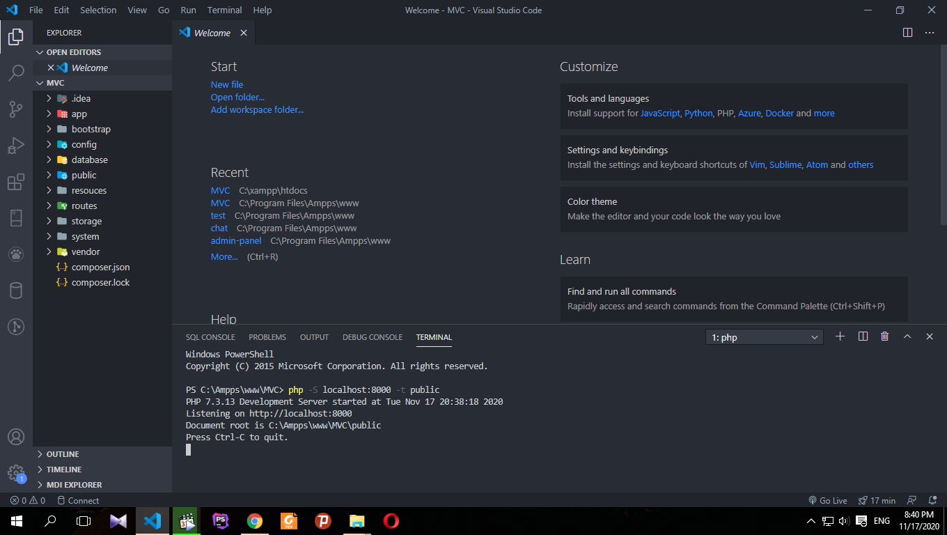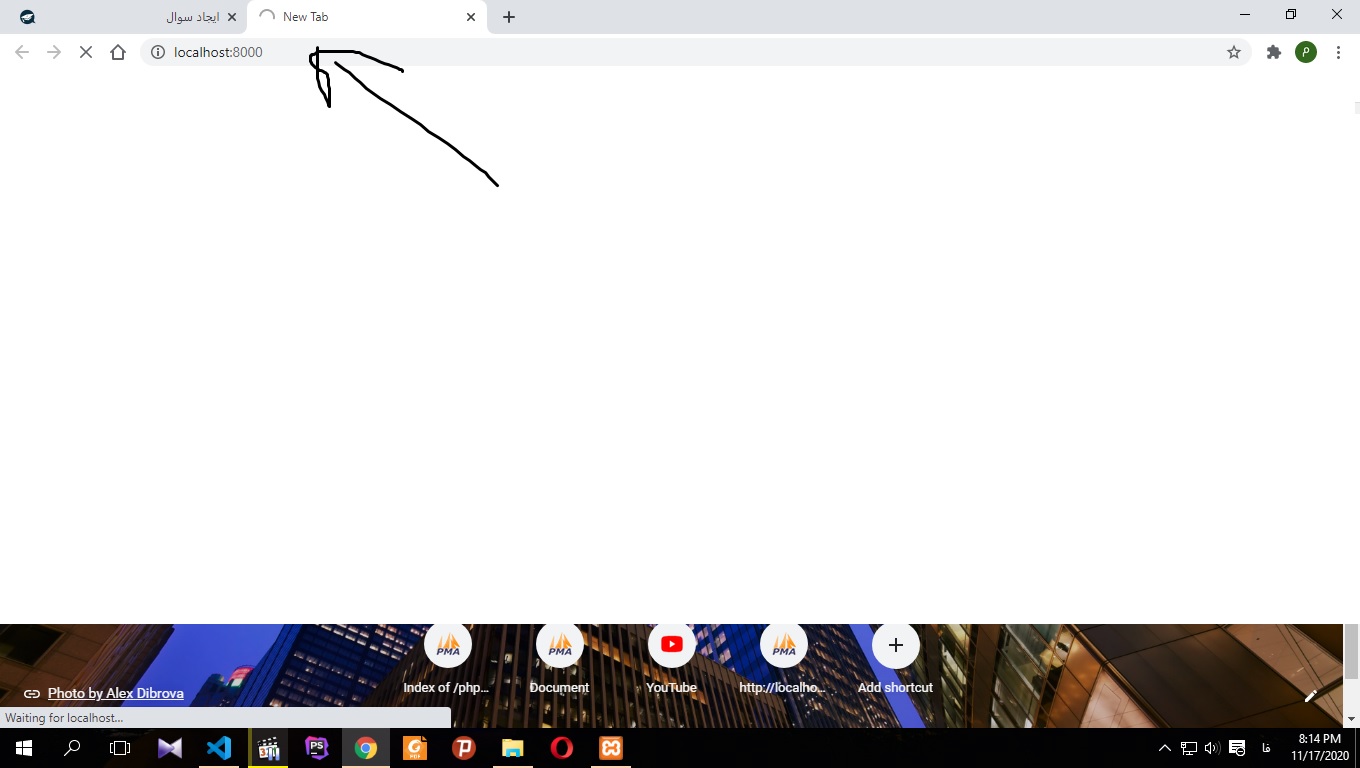 من صفحه لوکال هاست 8000 لود نمیشه یعنی اون نیم دایره هی میچرخه و صفحه رو به نمایش نمیاره