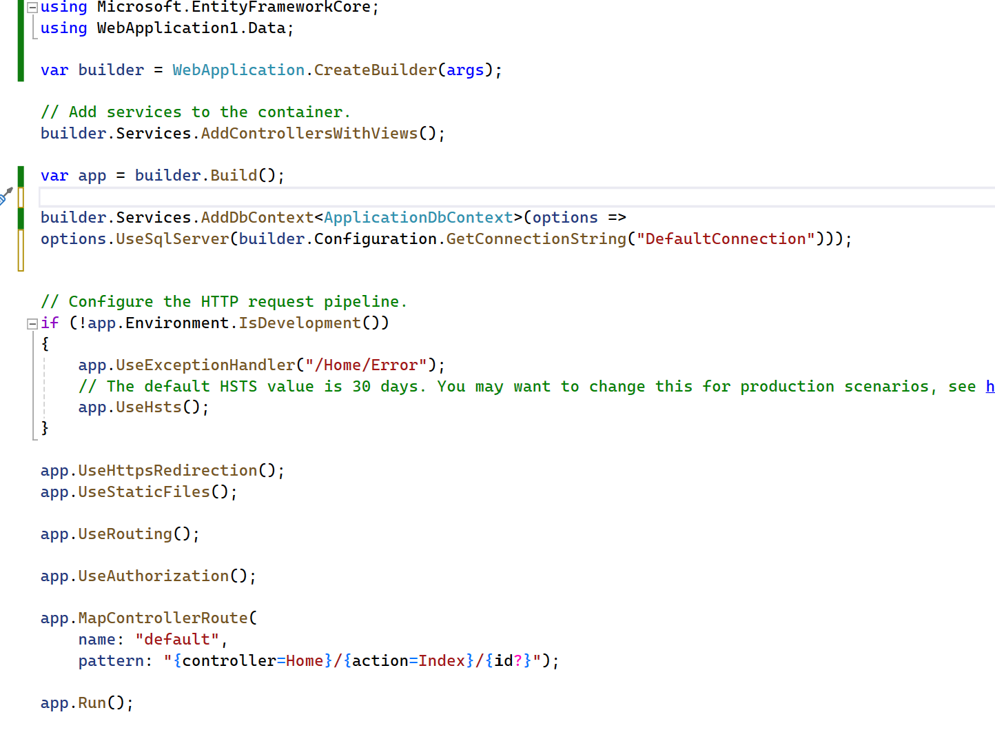 Unable to create a 'DbContext' of type ''. The exception 'Unable to resolve service for type 'Microsoft.EntityFrameworkCore.DbContextOptions`1[WebApplication1.Models.ApplicationDbContext]' while attempting to activate 'WebApplication1.Models.ApplicationDbContext'.' was thrown while attempting to create an instance. For the different patterns supported at design time, see https://go.microsoft.com/fwlink/?linkid=851728