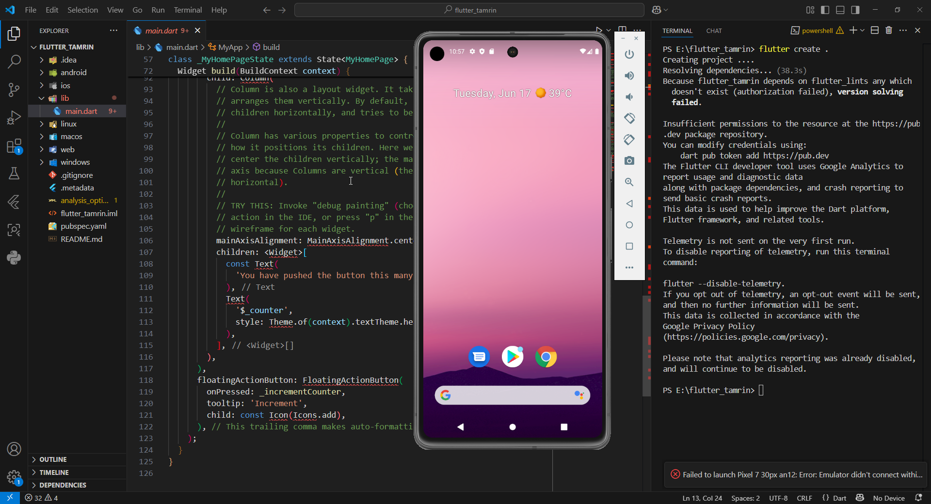 با عرض سلام پروژه فلاتر رو که میسازم به خطا مواجه میشم و پروژه رو اجرا نمی کنه