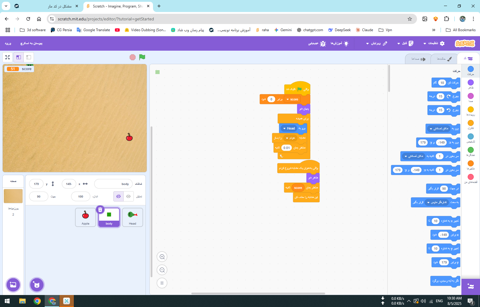 سلام ببخشید استاد من هر چه قدر تلاش کردم نتونستم اون دم مار که مربع مربع میشه رو درست کنم و هر چه دیدم توی کد اشغالی نبود من 3 روز به کد نگاه کردم واقعا اشتباهی ندیدم لطفا میشه بگید در کجا اشتباه داره ممنون ازتون
