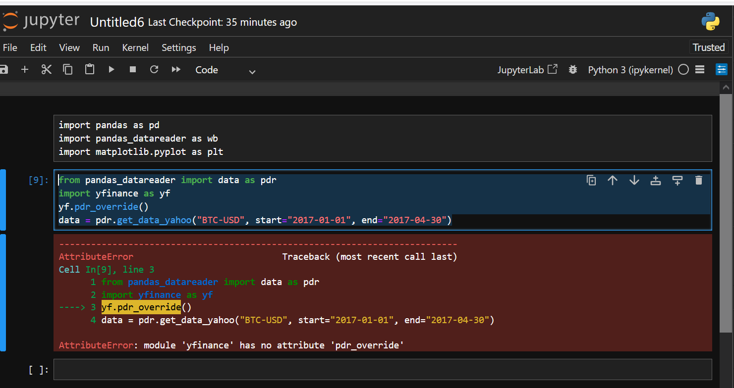 data = pdr.get_data_yahoo("BTC-USD", start="2017-01-01", end="2017-04-30")
