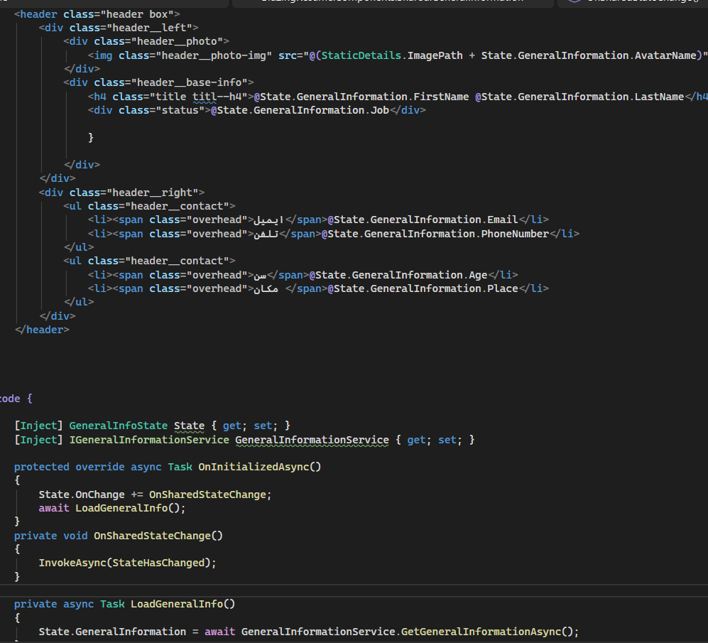 این Layout یک پروژه رزومه است عملا اینجا که GeneralInfo لود میشه باعث میشه در صفحات بعدی DbContext دچار مشکل بشه.