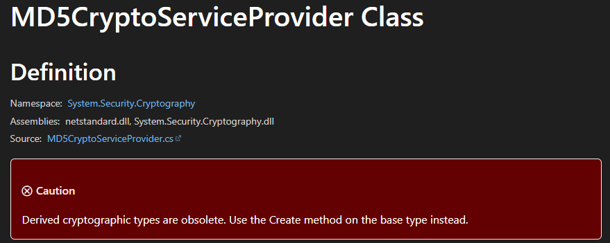 من موقعی که داشتم ساخت سرویس passwordHasher به موضوع منسوخ شدن این نوع استفاده از MD5 برخورد کردم.