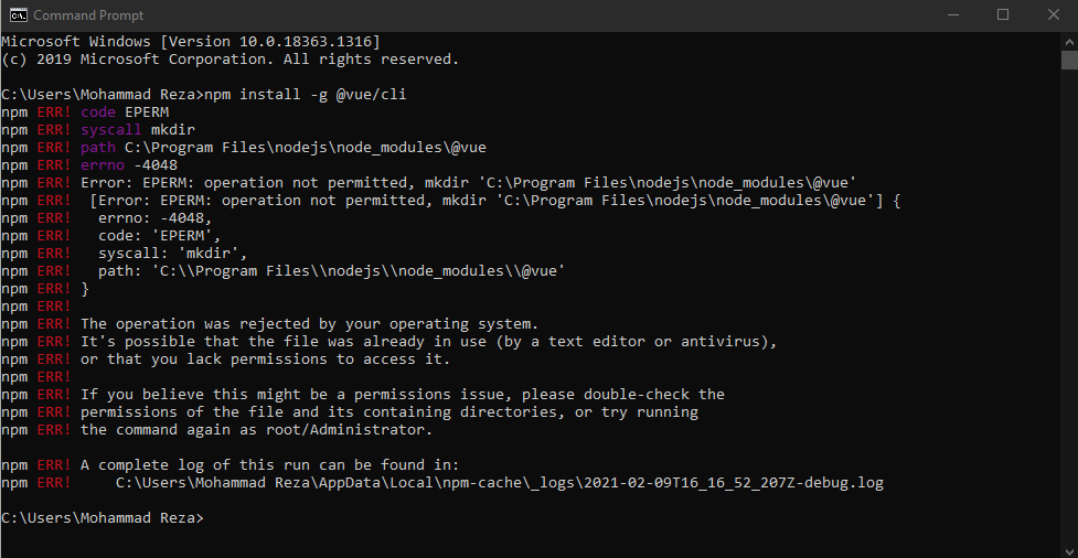 موقع نصب یکی از فریم ورک های جاوا اسکریپت به این ارور خوردم.