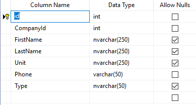 من الان میخوام داخل DataGrid خودم نام و نام خانوادگی شماره تماس ، واحد و نام شرکت که تو تیبل company هست را بدم.