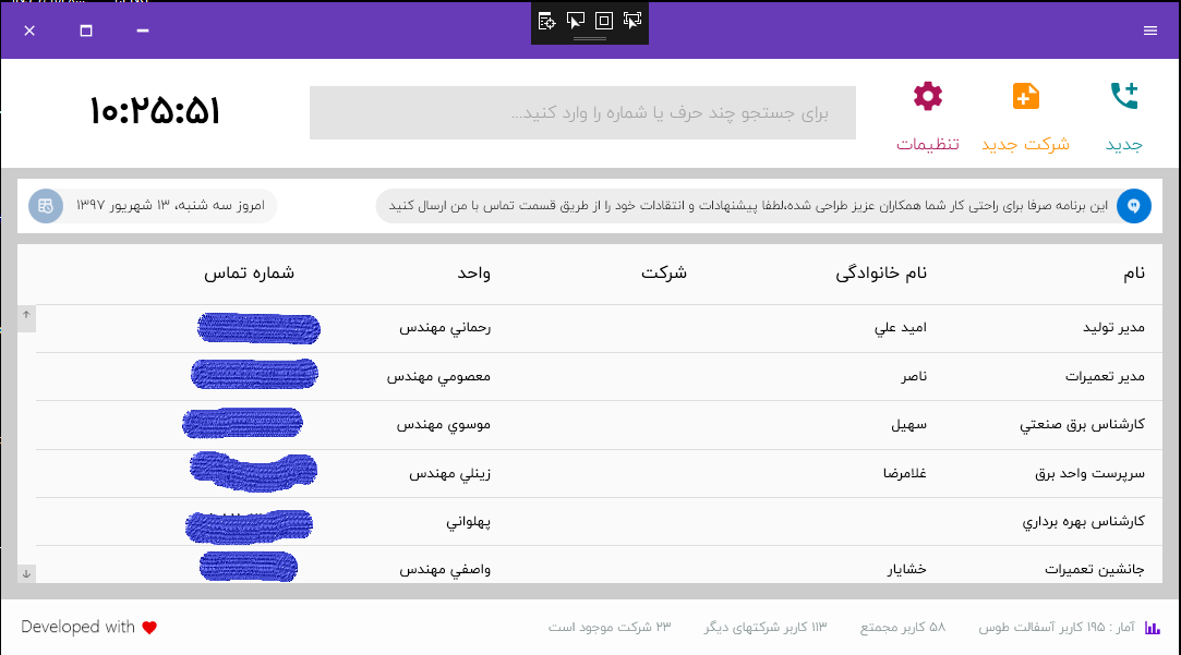 که  تقریبا همون مدل Contacts هست ولی این دفعه اسم کمپانی را بر می گردونه.