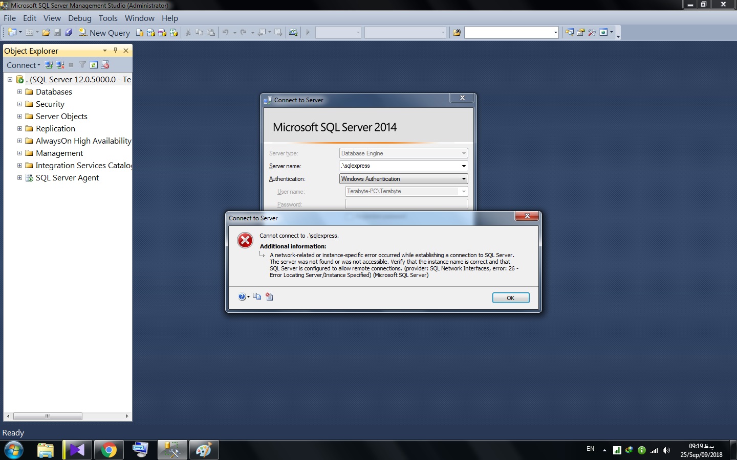 در همین ابتدای آموزش بعد از ساخت Script از بانک مورد نظر، وقتی می خوام به sqlexpress\. کانکت بشم ارور میده