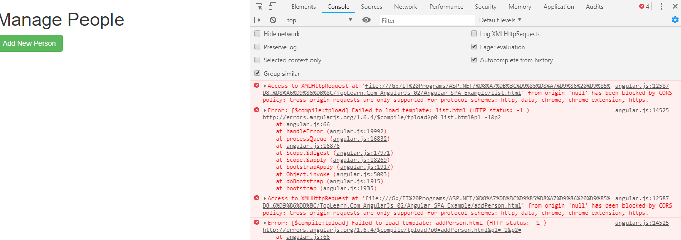 سلام استاد . توی پروژه عملی وقتی کلیک میکنم روی دکمه add new Person ارور میده . Cross Origin