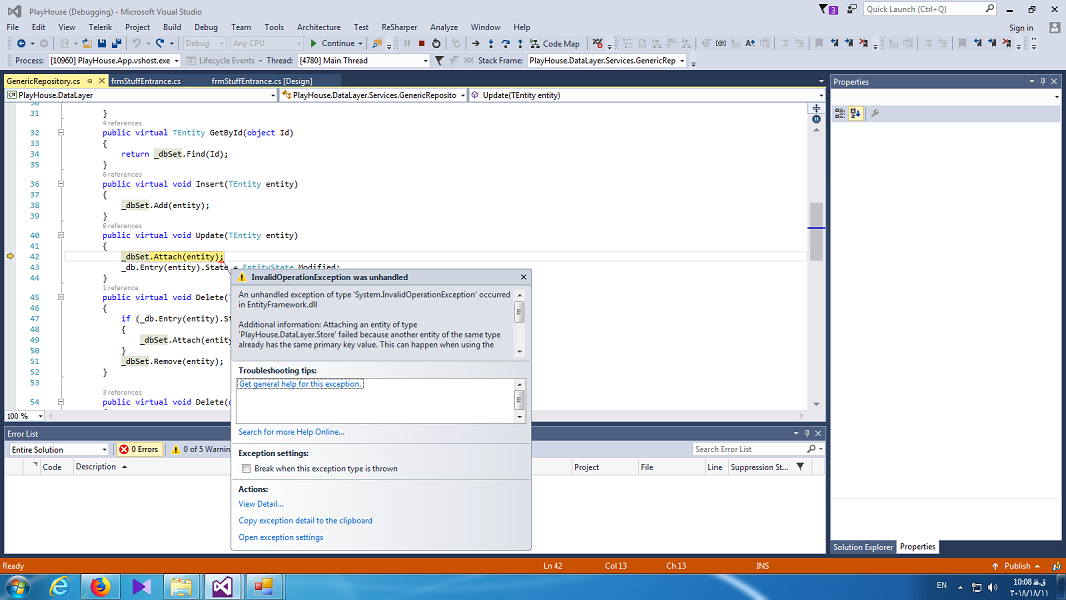 مشکلی که دارم اینه که زمانی که می خوام تو یک واحد using از یک ریپوزیتوری Get و با یک ریپوزیتوری دیگه عملیات Update انجام بدم error می ده