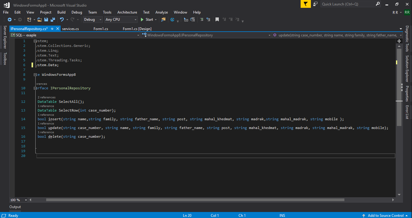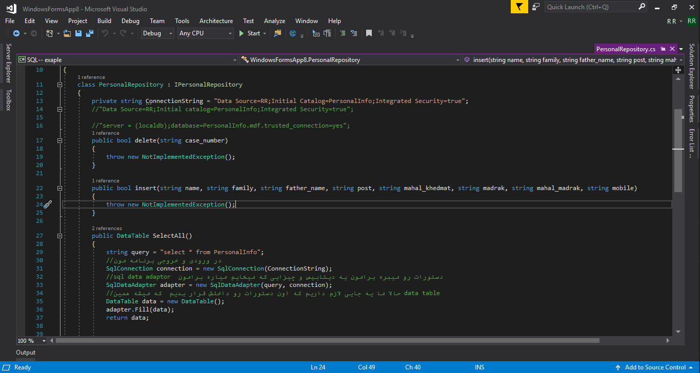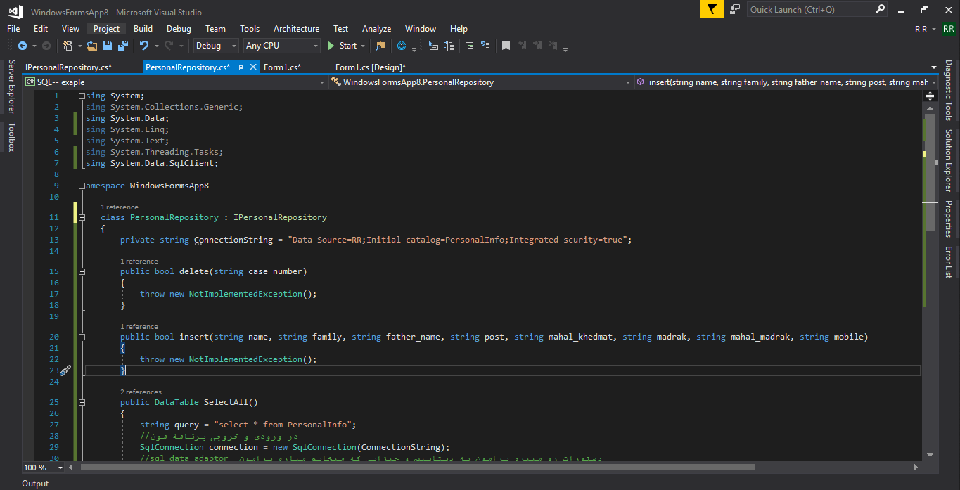 لینک کلاسی که دستورات sql داخلش نوشتم http://s8.picofile.com/file/8345893342/%D8%A7%DB%8C%D9%86%D8%AA%D8%B1%D9%81%DB%8C%D8%B3_%D9%87%D8%A7.png