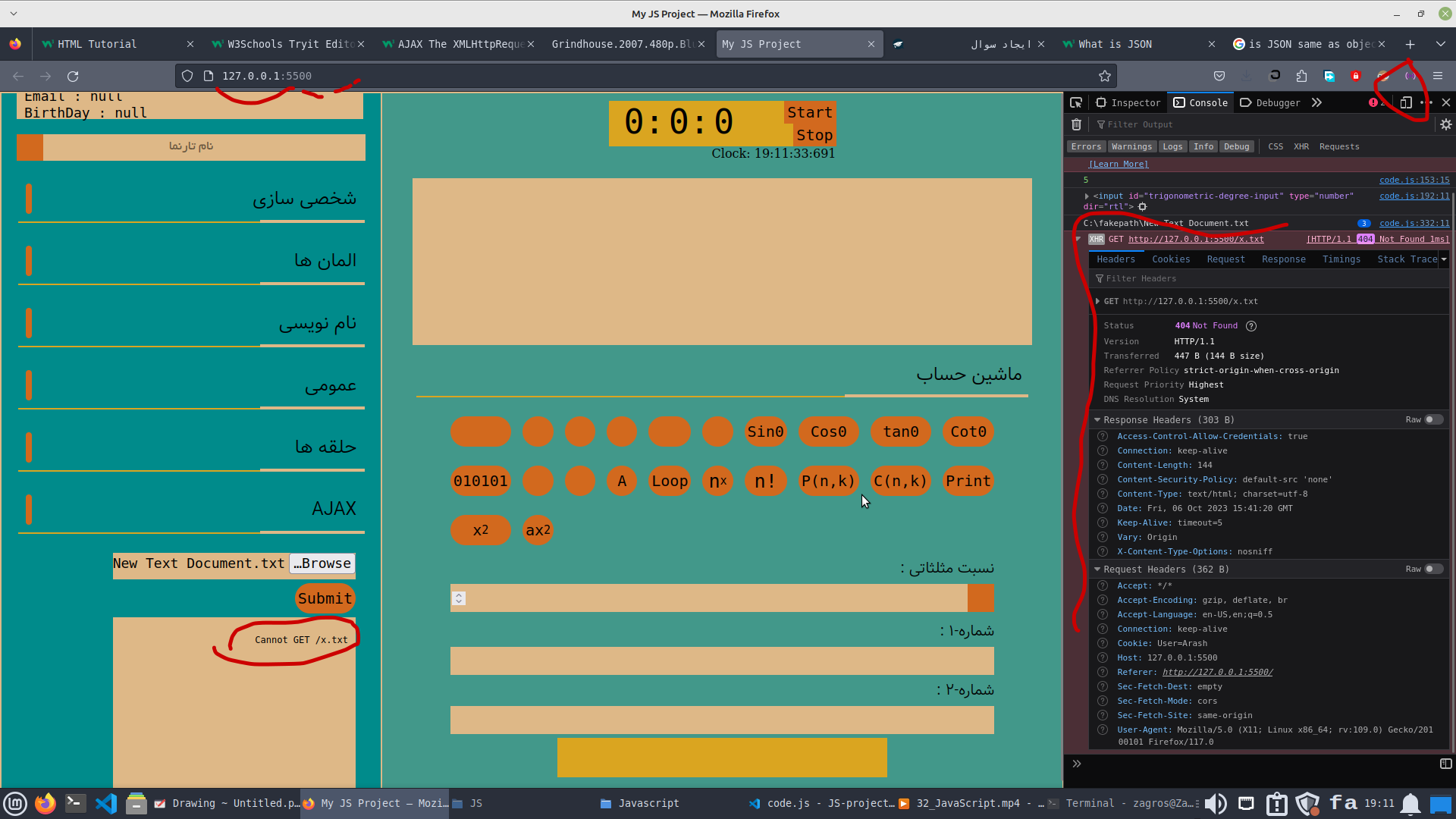 سلام سرور خطای 404 برای فایل x.txt داده یعنی فایل و پیدا نمی کنه. این کد کار می کنه فقط یک فایل x.txt کنار فایل html بساز داخلش هر چی خواستی بنویس