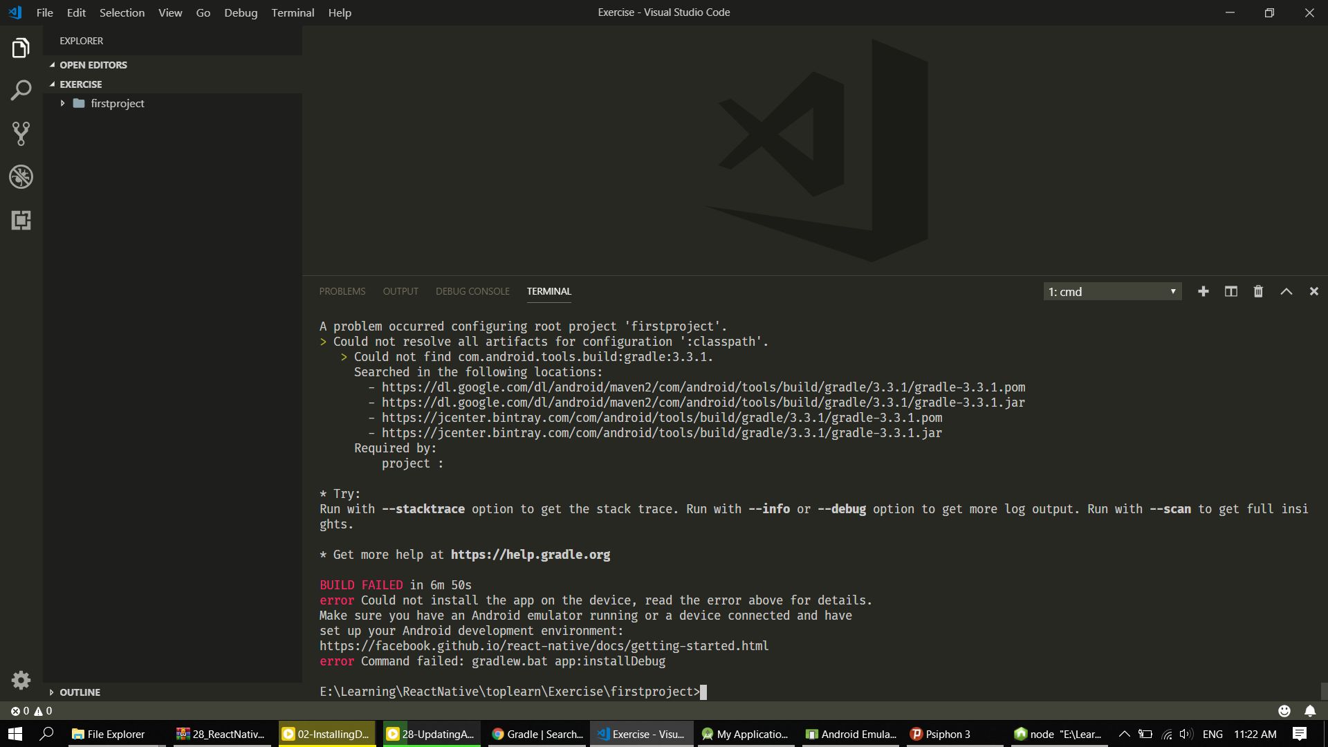 بله رفتم توسایت react دیدم و دانلود کردم الان تو امولاتور این خطا رو دارم..