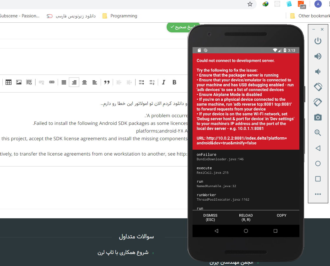 با سلام موقع تصب gradle با دستور run-android با ایتکه فیلتر شکت فعال بود با خطای زیر مواجه شدم. راهنمایی میفرمایید