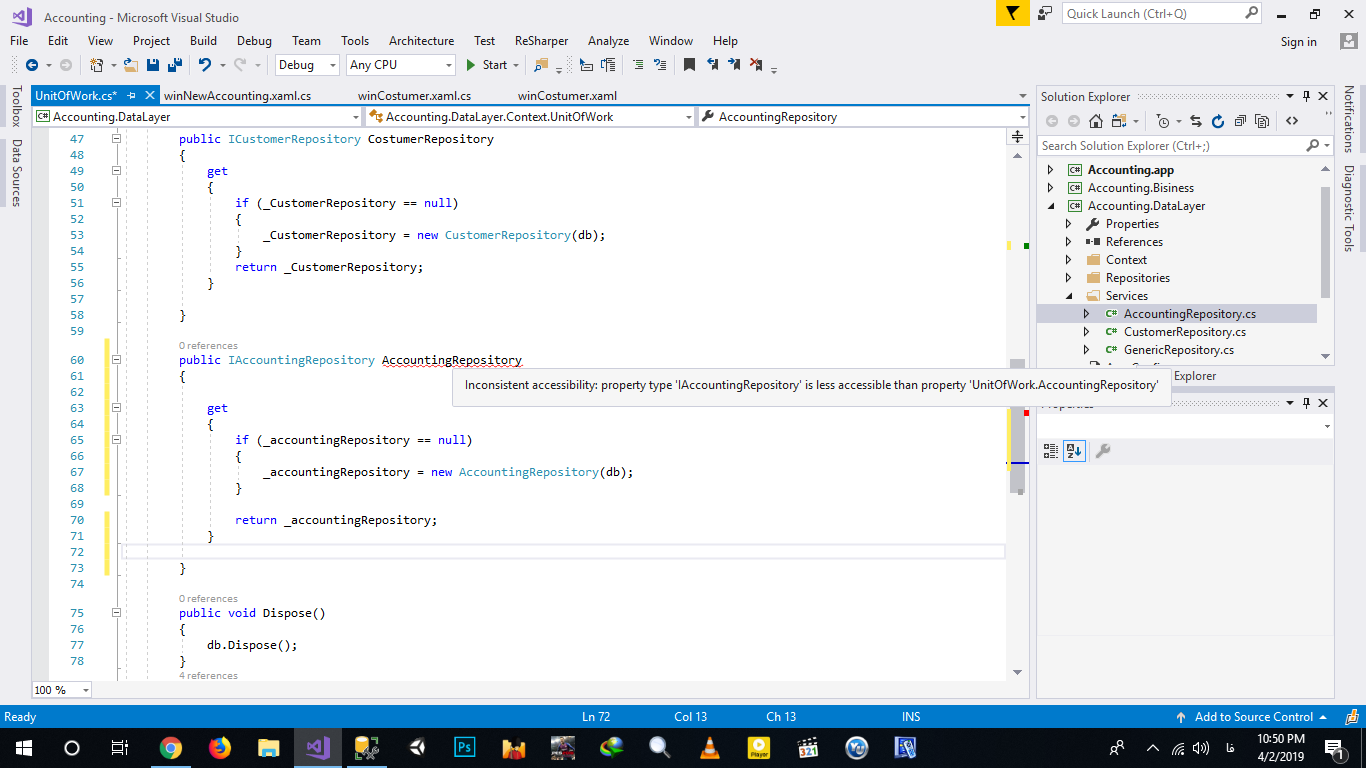 من وقتی accounting repository رو ساختم نمیتونم اون رو به UnitOfWork اضافه کنم و با این ارور مواجه میشم ...